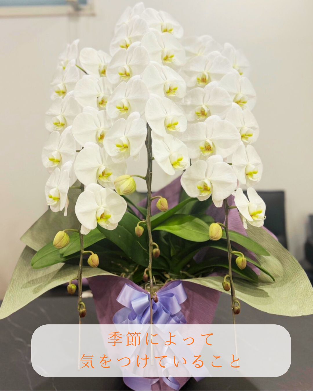 胡蝶蘭は一年を通して楽しめるお花ですが、季節によって環境の影響を受けやすいため、私たちはその時期ごとに管理方法や配送時の配慮を変えています。 大切なお祝いのお花を、美しい状態でお届けするための工夫をご紹介します。 ☀ 夏…