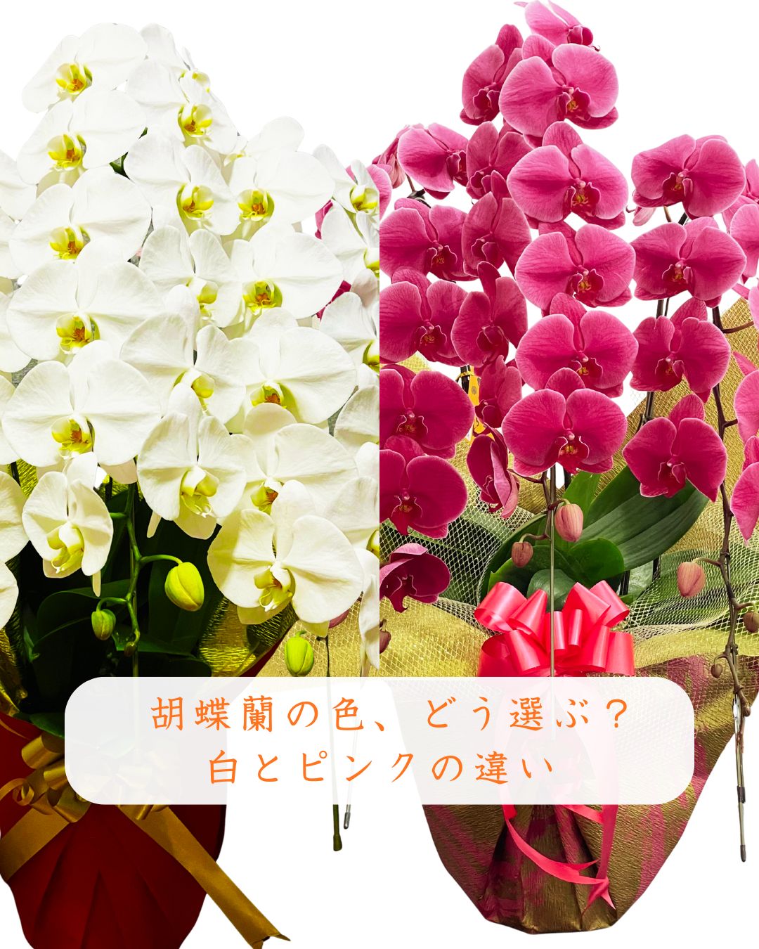 胡蝶蘭を贈るとき、「色はどれを選べばいいの?」と迷われる方は少なくありません。 今日は、よくご相談いただく白とピンクの胡蝶蘭の違いについて、簡単にご紹介します。 🤍 白い胡蝶蘭の印象 白い胡蝶蘭は、清潔感と格式のある印象…