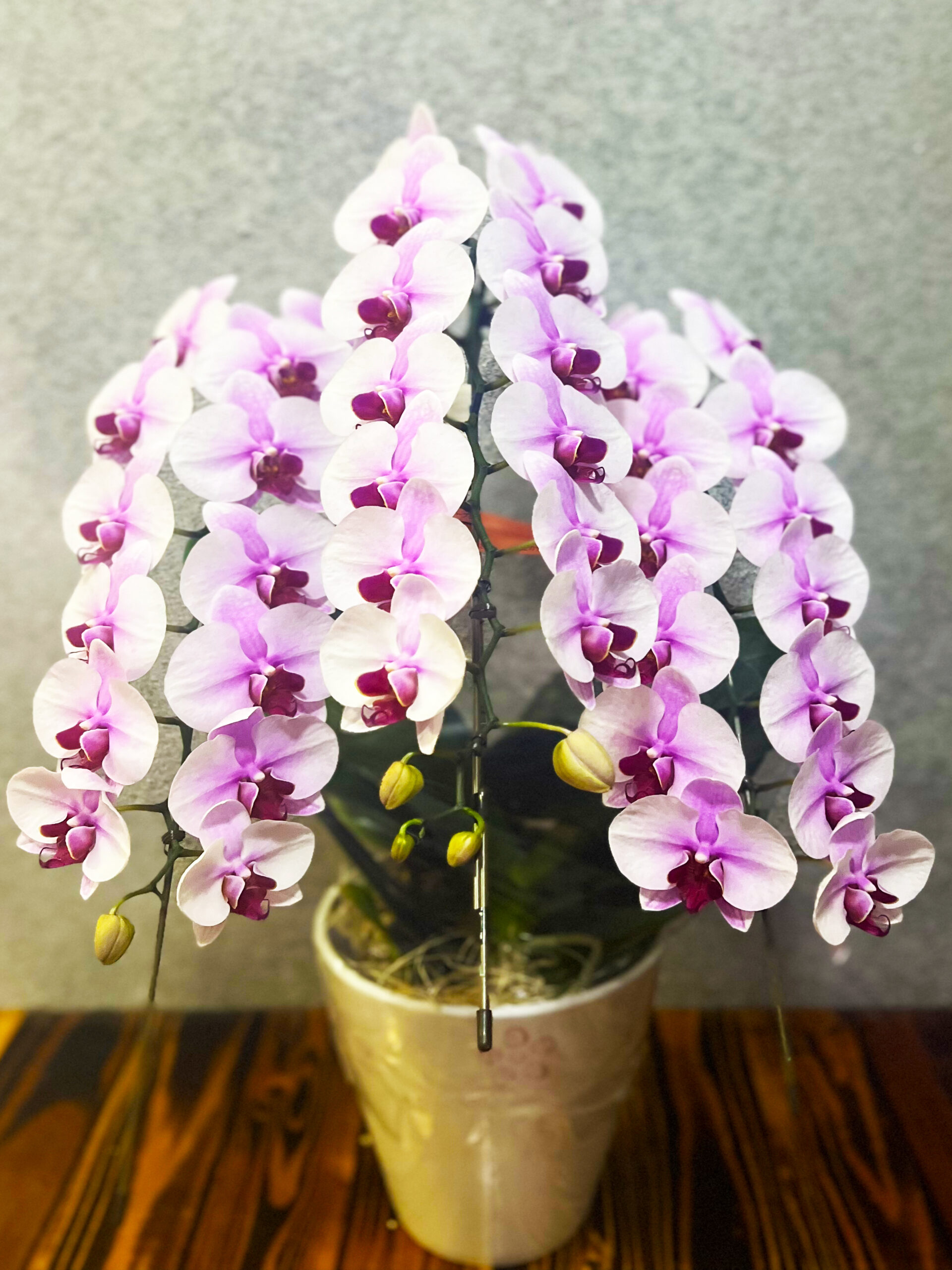 法人向けギフトや個人のお祝い、お悔やみなど様々なシーンで重用される白い花びらに赤い中心部が特徴の気品溢れる胡蝶蘭です。