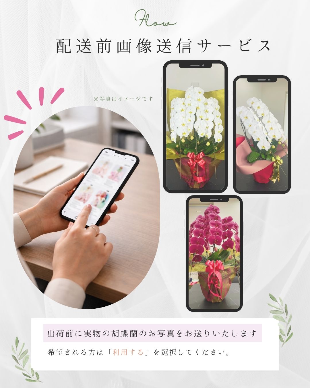 胡蝶蘭は贈答用として安心してご利用いただけるよう、